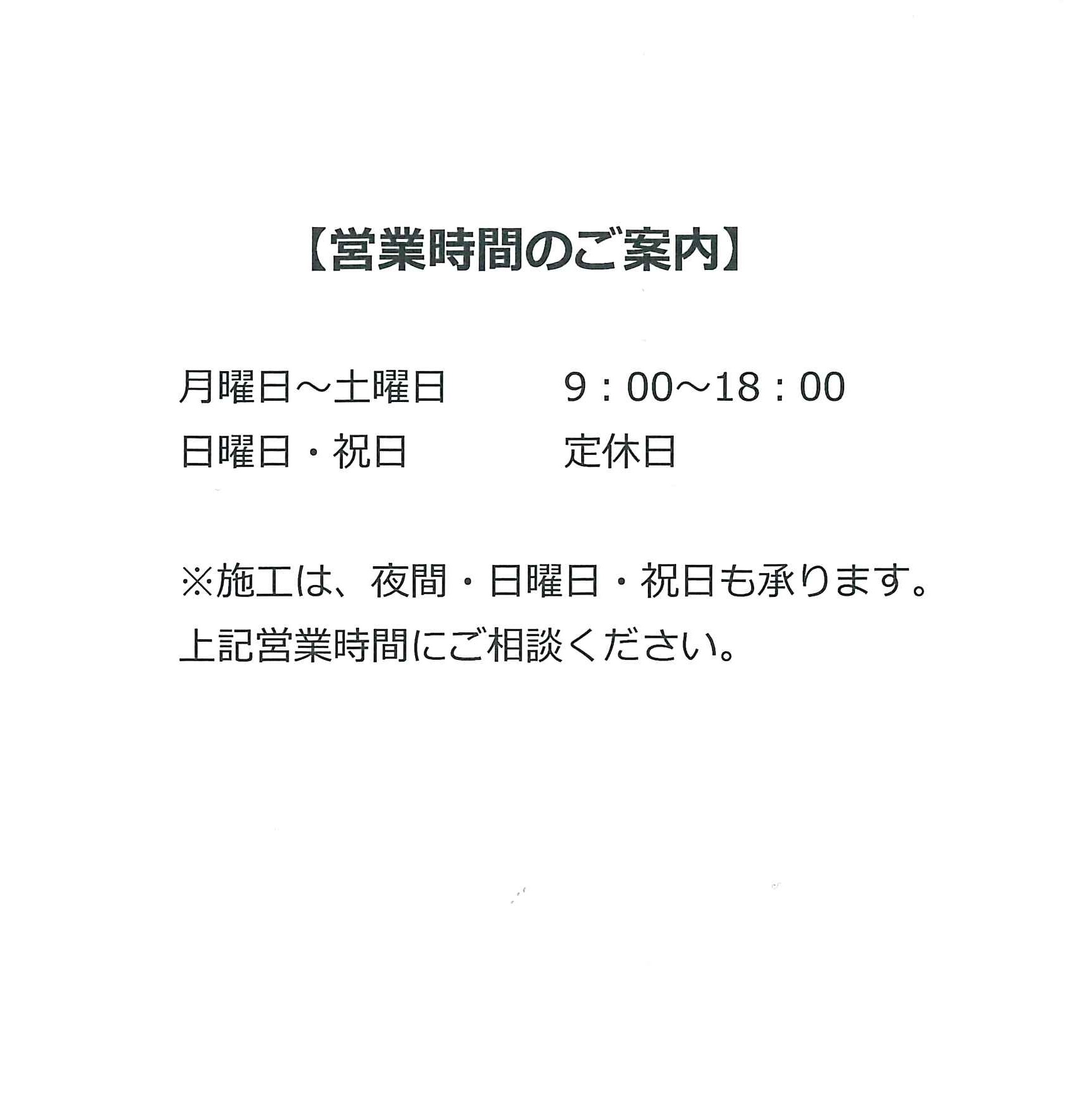 2026.02.3 最新のお知らせ anchor-corp-editor 【営業時間のご案内】 月曜日~土曜日 9:00~18:00 日曜日・祝日 定休日 ※施工は、夜間・日曜日・祝日も承ります。 上記営業時間内にご相談ください。